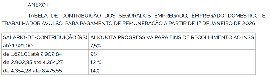 A Tabela do INSS de 2026 foi liberada, trazendo o reajuste dos benefícios pagos pelo INSS e as alterações na tabela do Regulamento da Previdência Social (RPS) e valores da cota de salário-família. A Portaria Interministerial MPS/MF n°13 de 09 de Janeiro de 2026 trouxe dentre outras novidades a nova tabela de INSS a partir de janeiro de 2026, confira: