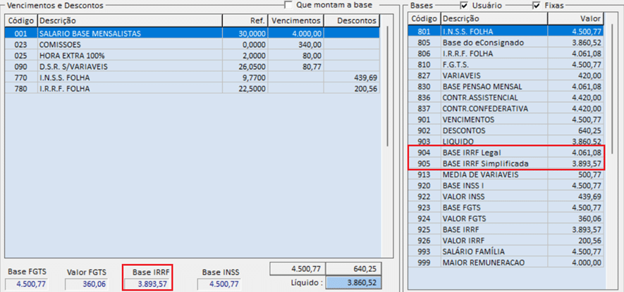 = R$ 3.893,57 Base de IRRF x 22,5% = 876,05 – 675,49 (dedução faixa 22,5%)